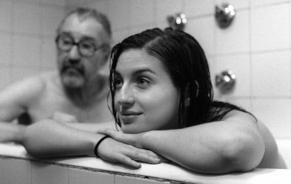 فيلم “مدريد، 1987″، المركَّز مكانياً على دورة المياه – باستثناء المقاطع الأولى له – أعاد إليّ هذه الفكرة، وذكّرني بقدسية هذا المكان وأهميته الوجودية لنا، خارج إطار “التفريغ الهضمي”. لا يمكن قراءة هذا الاختيار للمكان بمعزل عن هذا البُعد الرمزي له. إن الكمّ الهائل من الأحاديث التي جرت بين العجوز والفتاة لا يُحتمل تفويته، لن تفوَّت أية كلمة ممّا قالاه وهما عاريان إلا من منشفة زهريّة صغيرة.
